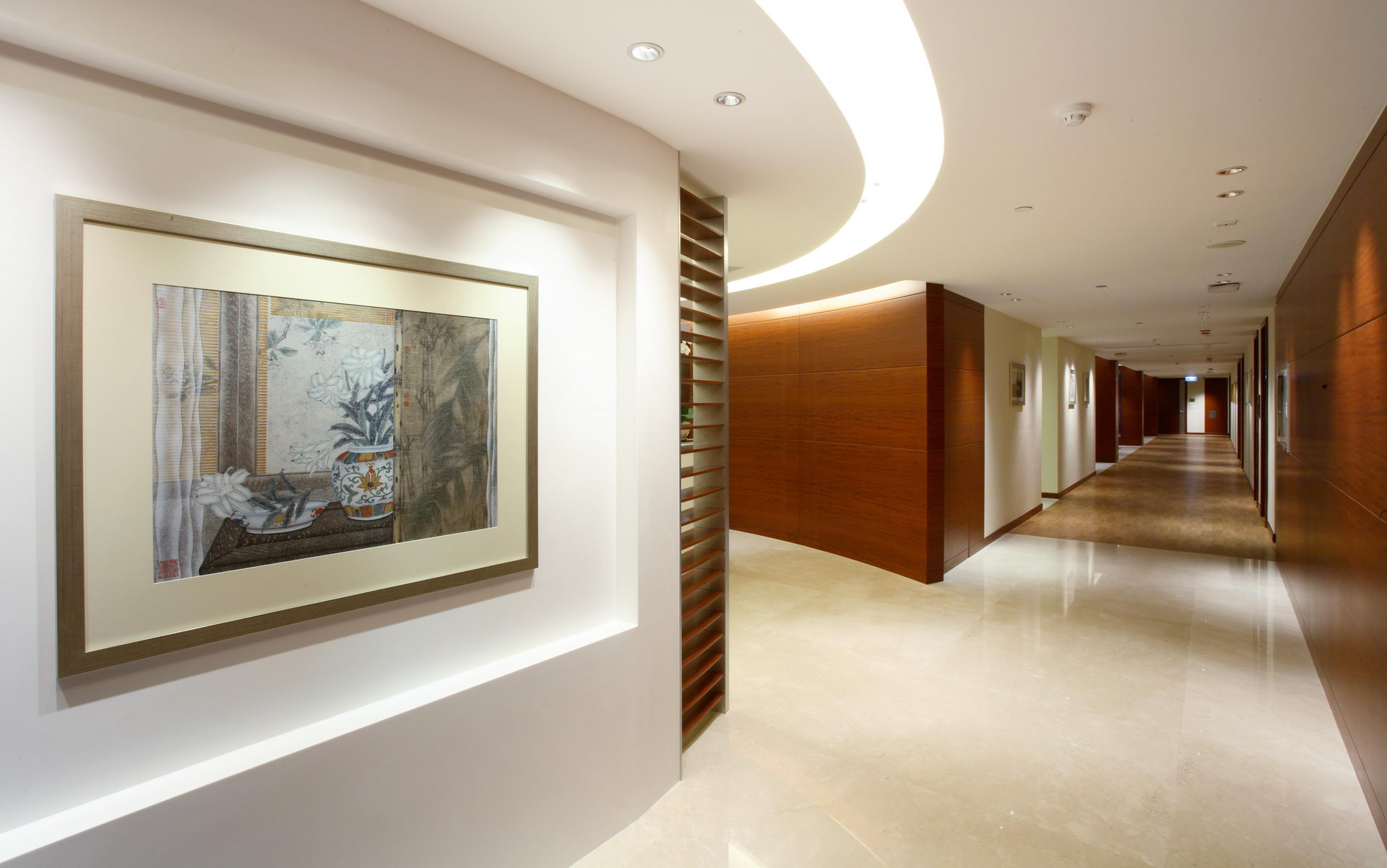 • Key Features: These vinyl Wall Panels are easy to clean, fire-resistant, and offer long-term durability for high-traffic Corridors.