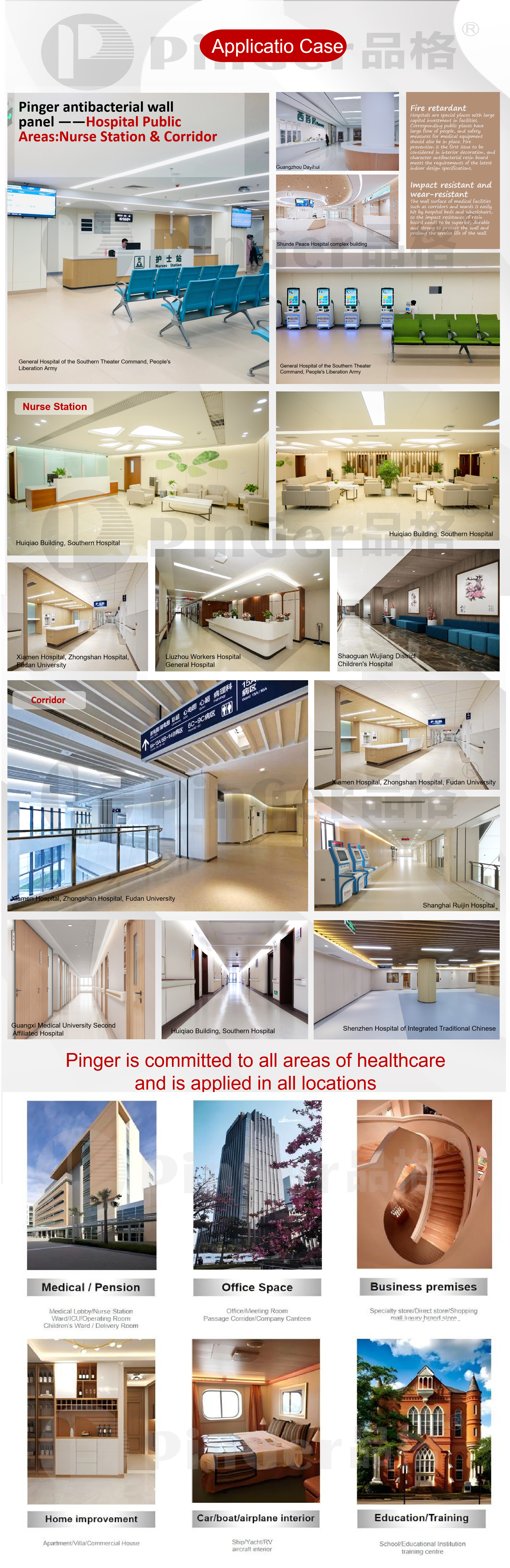 ● Die Wandpaneele und Wandschutzsysteme von Pinger nehmen unter vergleichbaren Produkten eine führende Position ein. Wir verfügen nicht nur über einen stabilen Marktanteil in China, sondern vertreiben unsere Produkte auch in über 100 Ländern und Regionen weltweit und sind international erfolgreich.