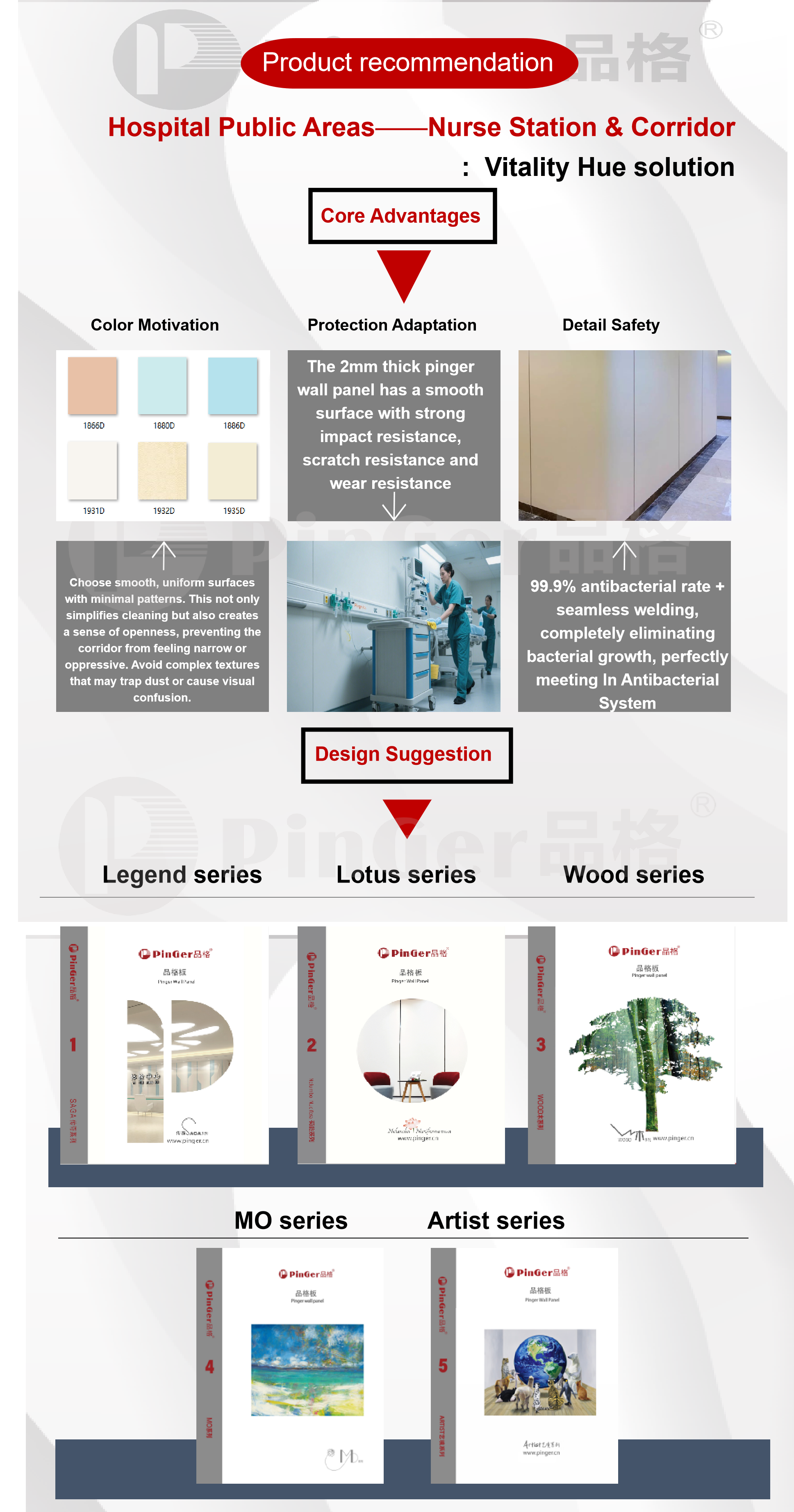 Von Krankenhäusern über Pflegeheime bis hin zu Kindergärten. Von Patientenzimmern bis zu Fluren bietet PinGer unübertroffene Hygiene und Stoßfestigkeit, außergewöhnliche Pflegeleichtigkeit und herausragendes Design.