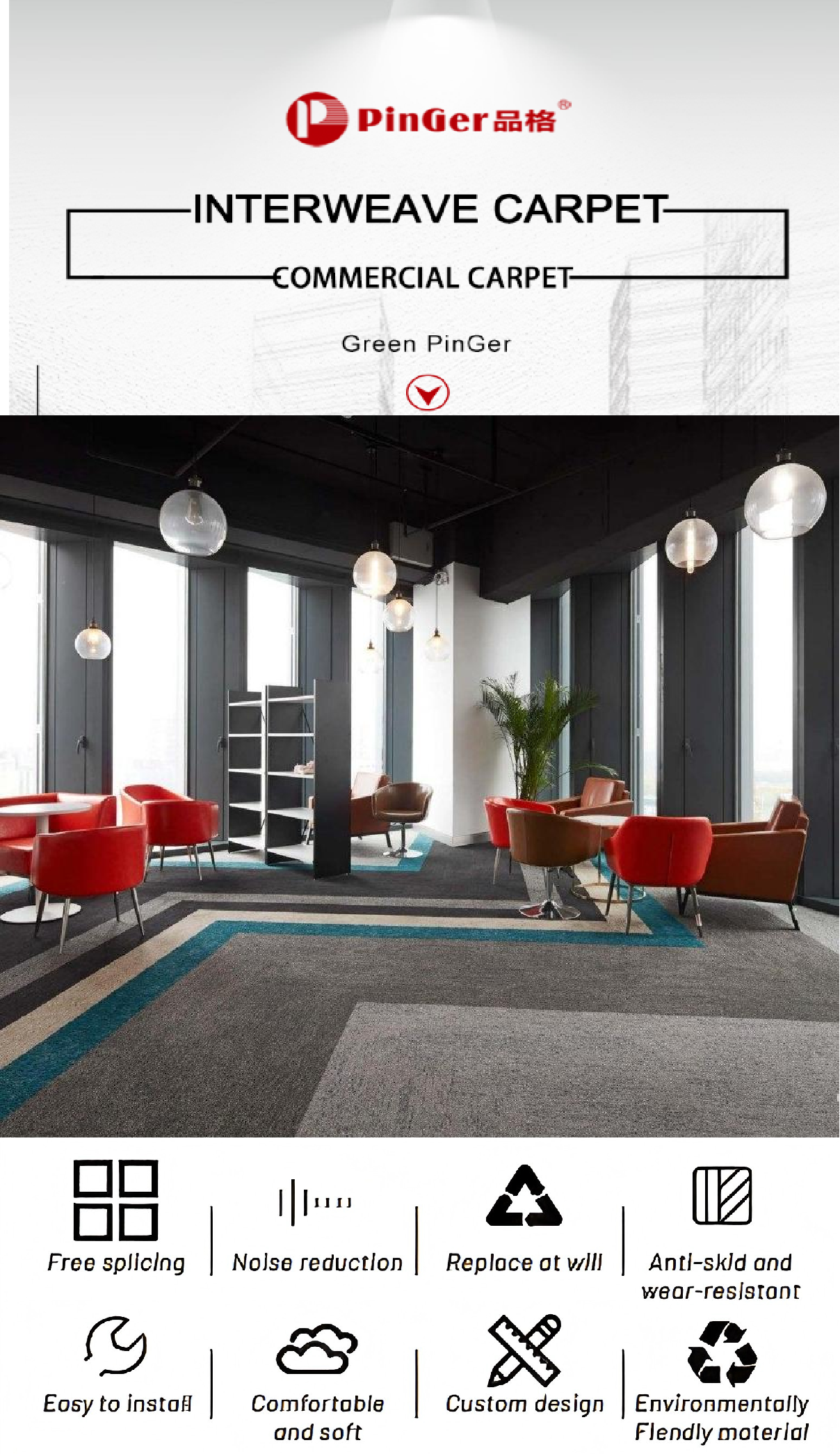 PinGer Interweave Commercial Carpet Umweltfreundlicher Bodenbelag mit ineinandergreifender Teppichfliese
